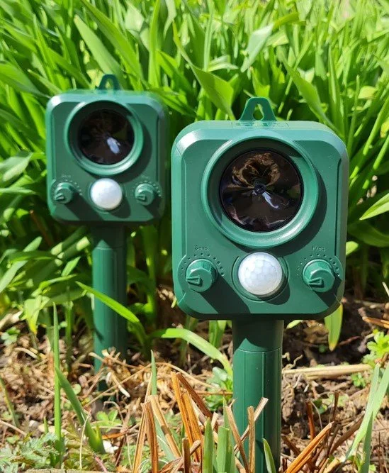 Motion lights or ultrasonic deterrents